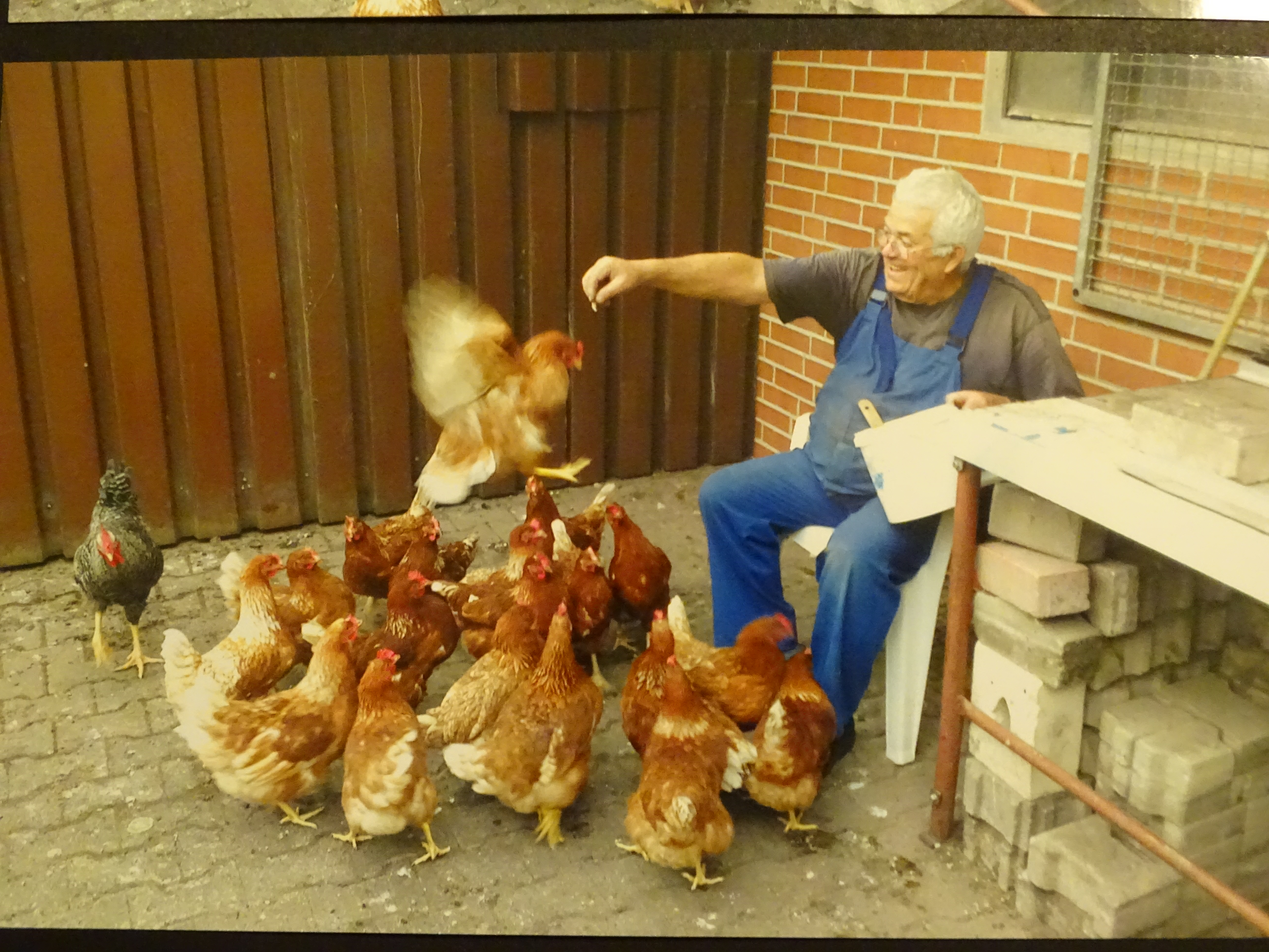 Mein Vater, Paul Olschimke, war selbständiger Bauunternehmer aus dem Hamelner Raum bevor er in den Ruhestand ging. Im Ruhestand wurde er Hobbyhühnerhirte und führte seine kleine Herde mit voller Inbrunst an, in ständiger Konkurrenz mit seinem Hahn :)